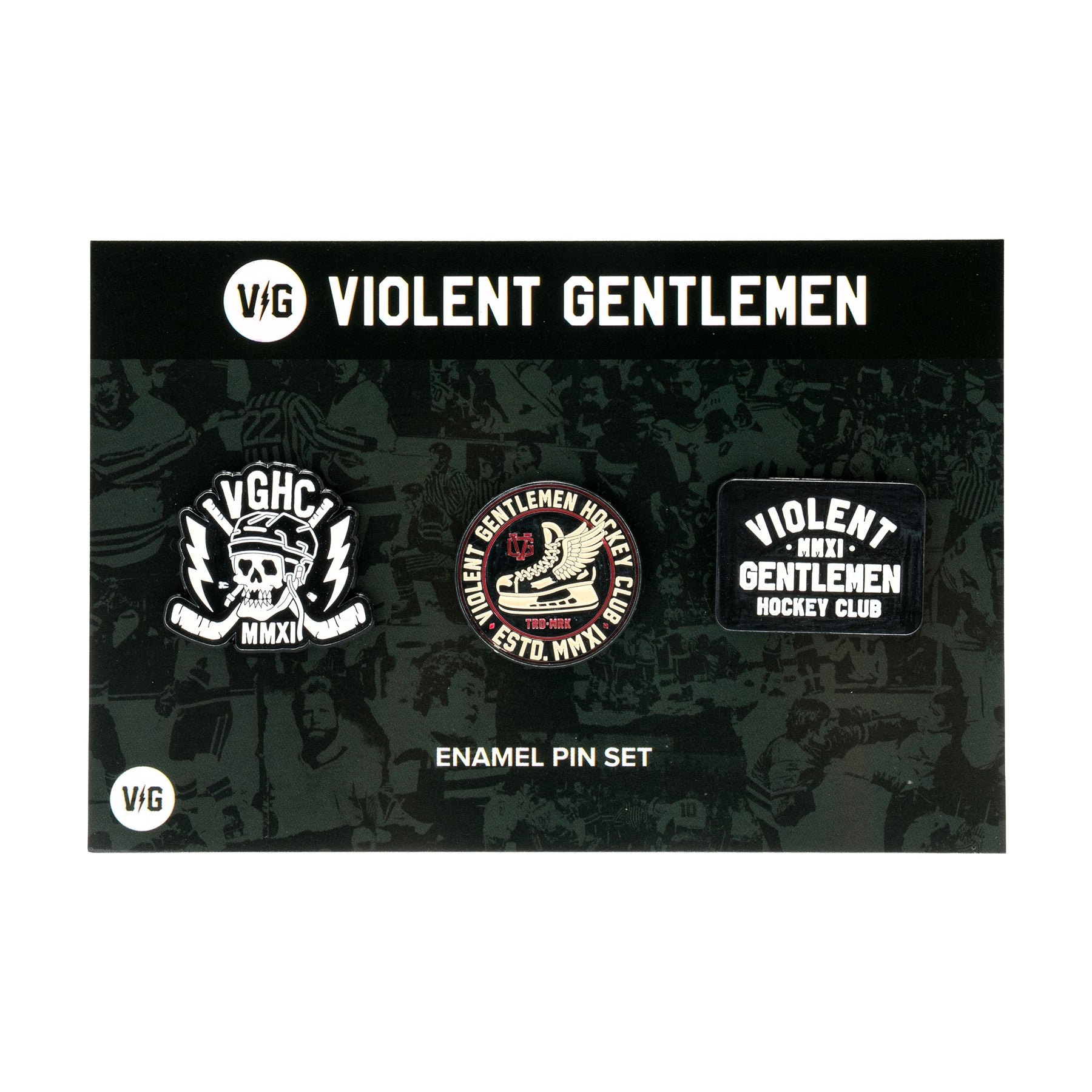 You ever feel like you just NEED a tiny version of something to carry around with you pinned to your clothing!? Well look no further! We have the full crew... Rock these hockey lapel pins featuring three different VG designs: Toothless, Winged, and Loyalty.